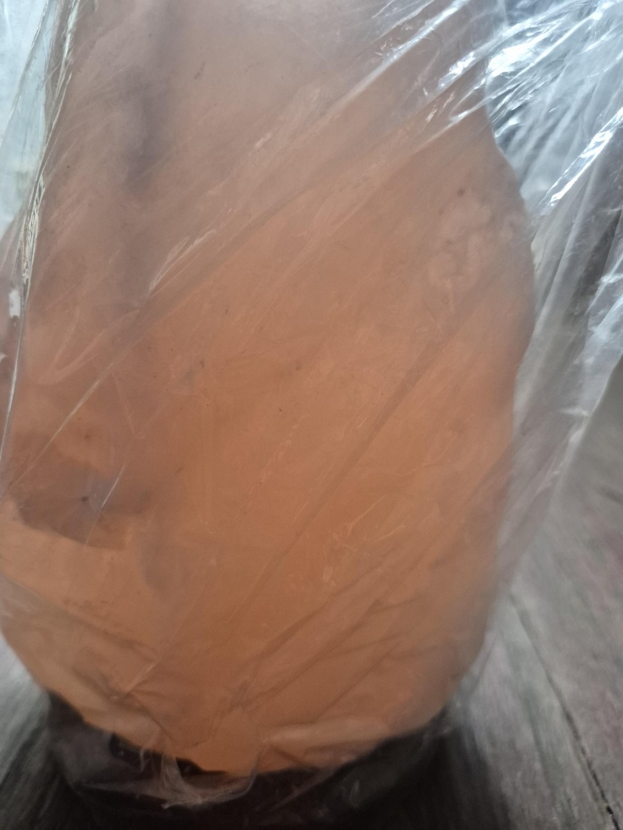 These Himalayan salt lamps have no cord but are wrapped in plastic and are on a wooden base.